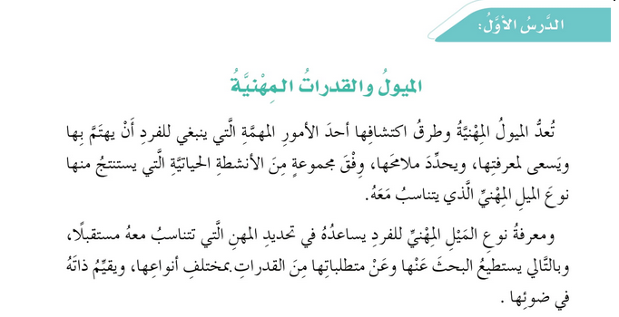 حل أنشطة الدرس (1) الميول والقدرات المهنية - مهارات حياتية صف خامس فصل…