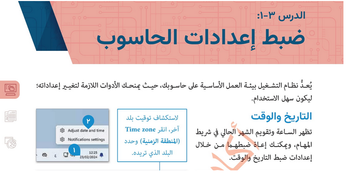 حل الدرس (3) ضبط إعدادات الحاسوب - تقنية المعلومات صف خامس فصل أول…