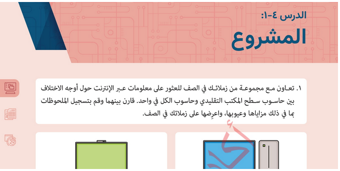 • حل الدرس (4) المشروع الوحدة (1) أساسيات الحاسوب – تقنية المعلومات خامس فصل أول