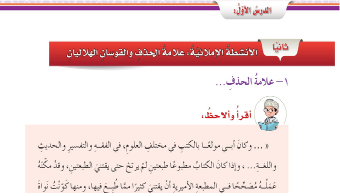 • حل درس علامة الحذف والقوسان الهلاليان – لغتي الجميلة صف سادس فصل أول – 2026