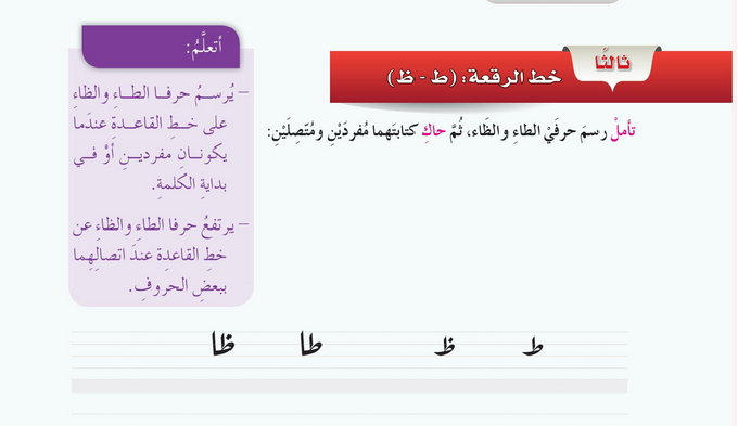• حل درس خط الرقعة : طــ ظـــ – لغتي الجميلة صف سادس فصل أول – 2026